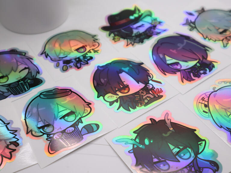 Printed: acrylic keychains, charms, standees, stickers, prints